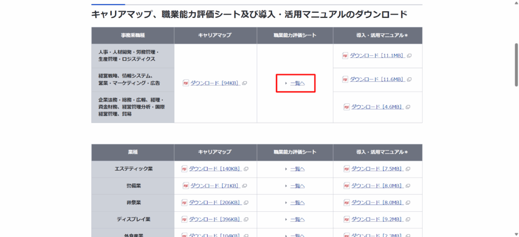 STEP1:厚労省の職業能力評価シートをダウンロード
